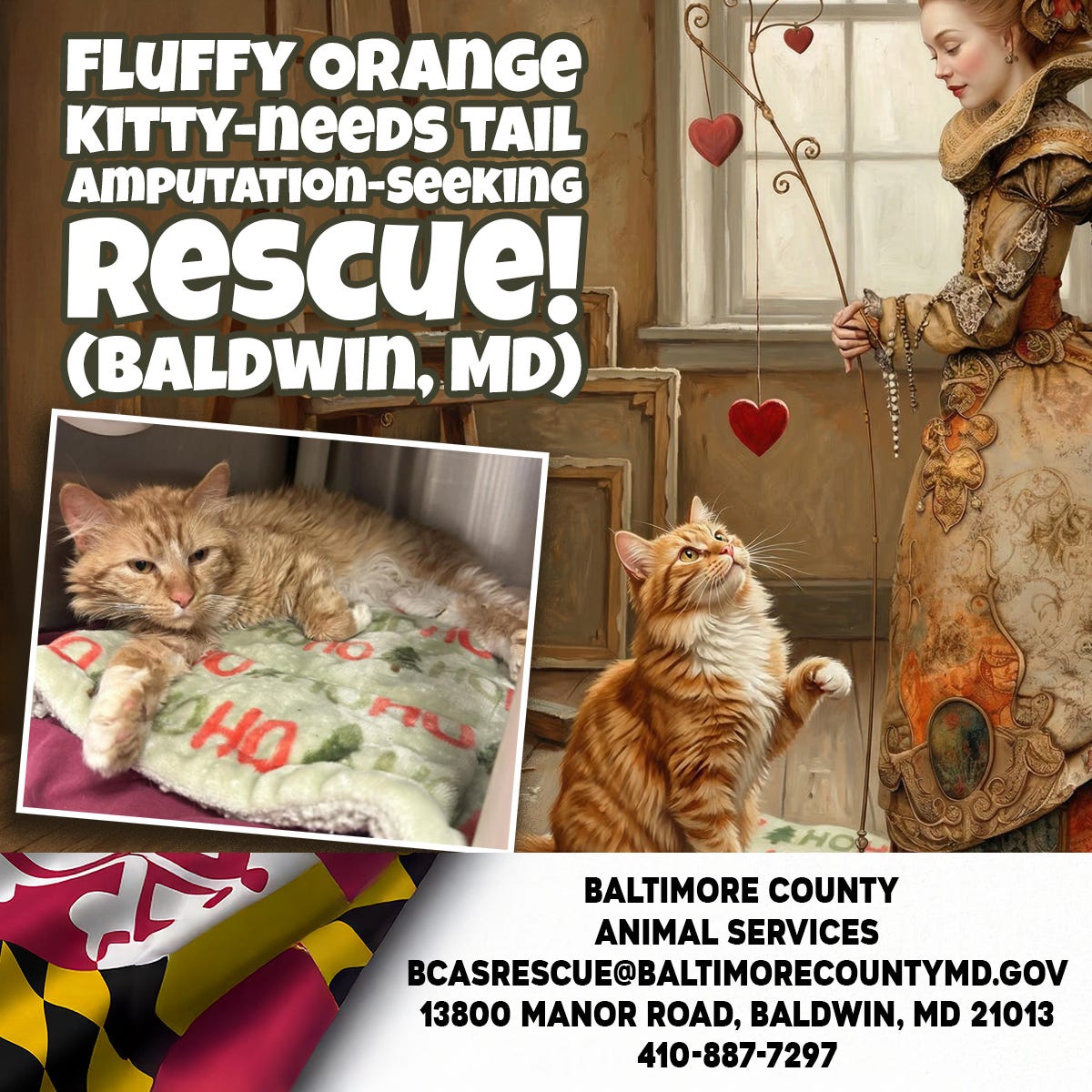 Fluffy Orange Kitty-needs tail amputation-Seeking Rescue! (Baldwin, MD)