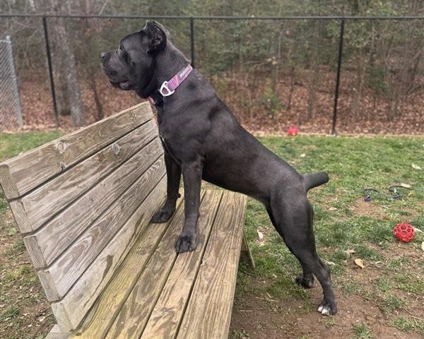 Lagatha is a 1.5-year-old, 101lb Cane Corso who has been at the shelter for 32 days. She was surrendered when her previous family realized her size and energy were more than they could manage, but despite that, she remains a sweet, affectionate, and loyal girl. Lagatha loves attention, being close to her humans, and giving big, enthusiastic “hugs.”